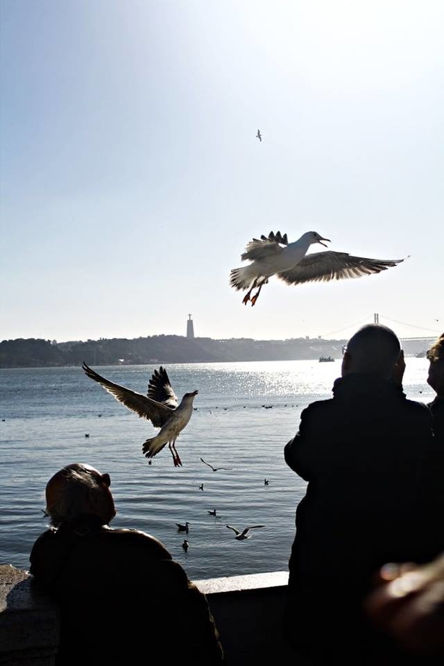 Gabbiani in volo nella città di Lisbona