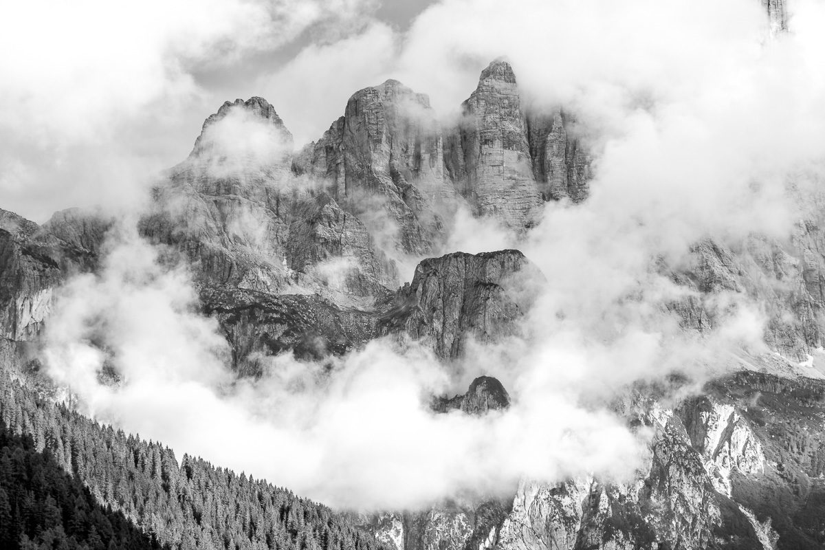 Quello che più mi affascina in montagna sono le nuvole che si incastrano tra le cime e creano dei bellissimi giochi di luce sulla vallata. Il loro spostarsi così velocemente e sinuosamente scandiscono il tempo durante la giornata durante le camminate. Queste foto rappresentano il monte Civetta delle Dolomiti in provincia di Belluno.
