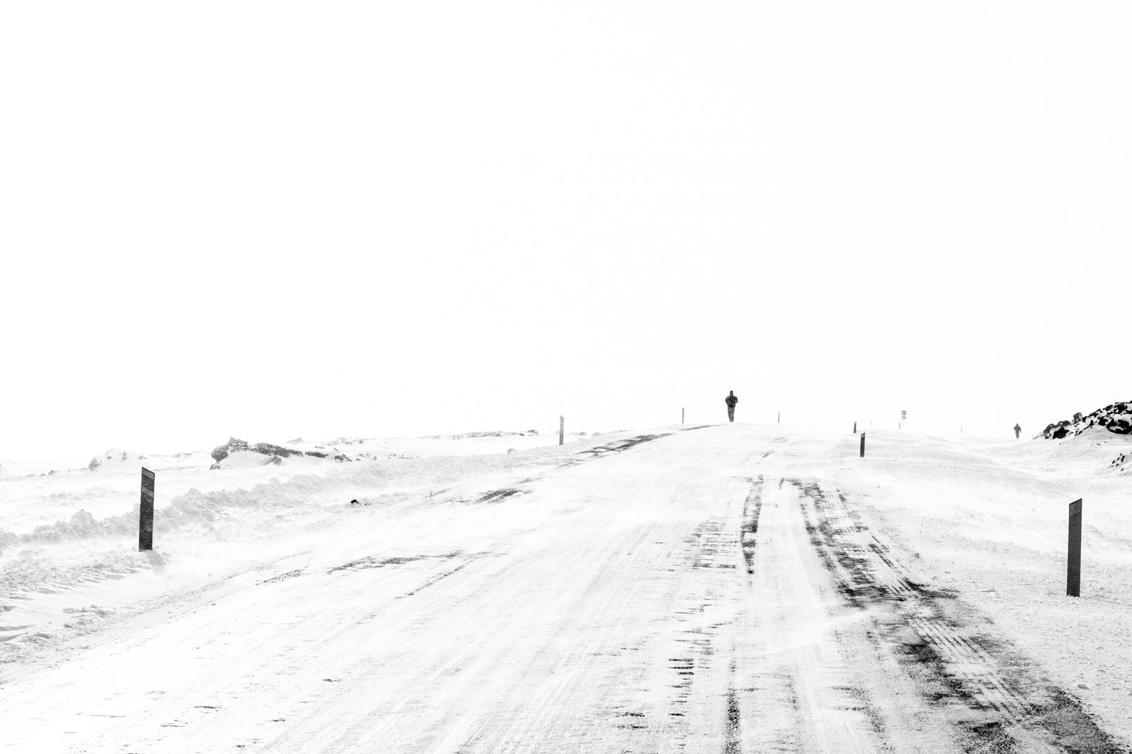 Quel giorno, con raffiche a 140km/h i fiocchi di neve erano come aghi che entravano anche sotto al cappuccio della mia giacca mimetica. Ad un certo punto il sole si fece intravvedere. Questo è quel momento, quando due pazzi del posto stavano camminando tranquillamente diretti verso la stazione di servizio.