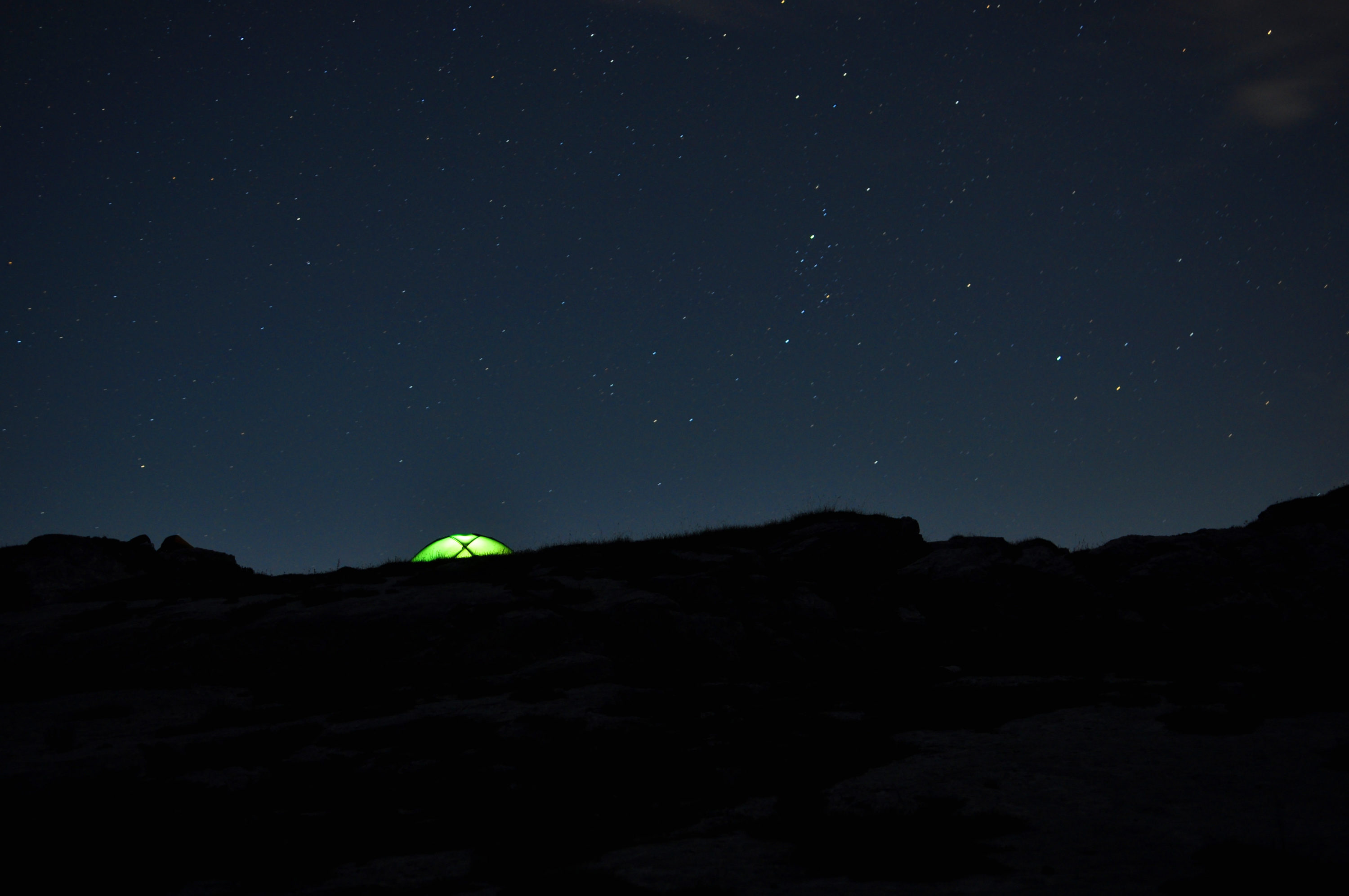 Notte stellata al campo base degli speleologi sul massiccio della Presolana