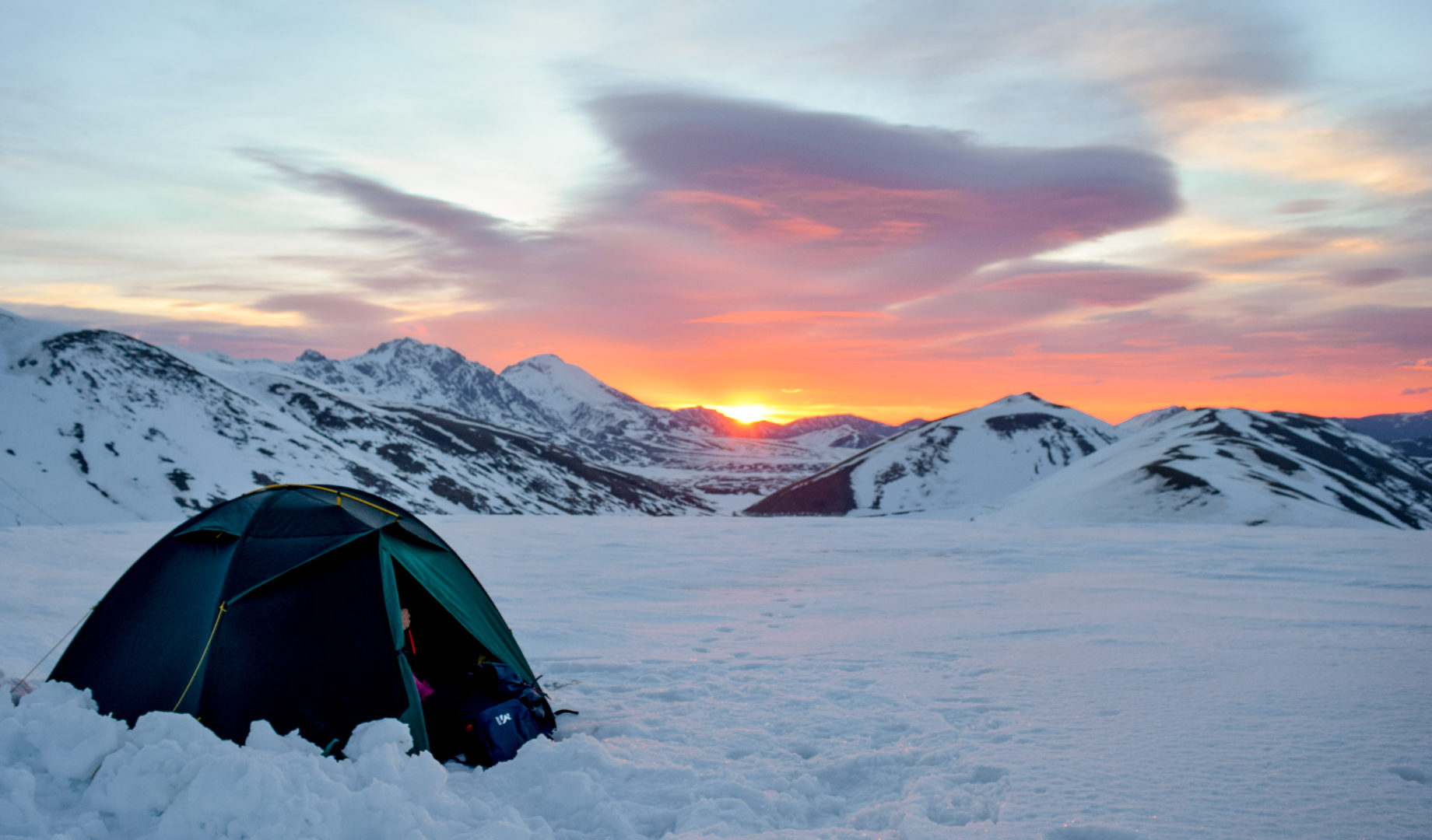 Dopo una piacevole notte in tenda, ci sveglia un'alba mozzafiato.