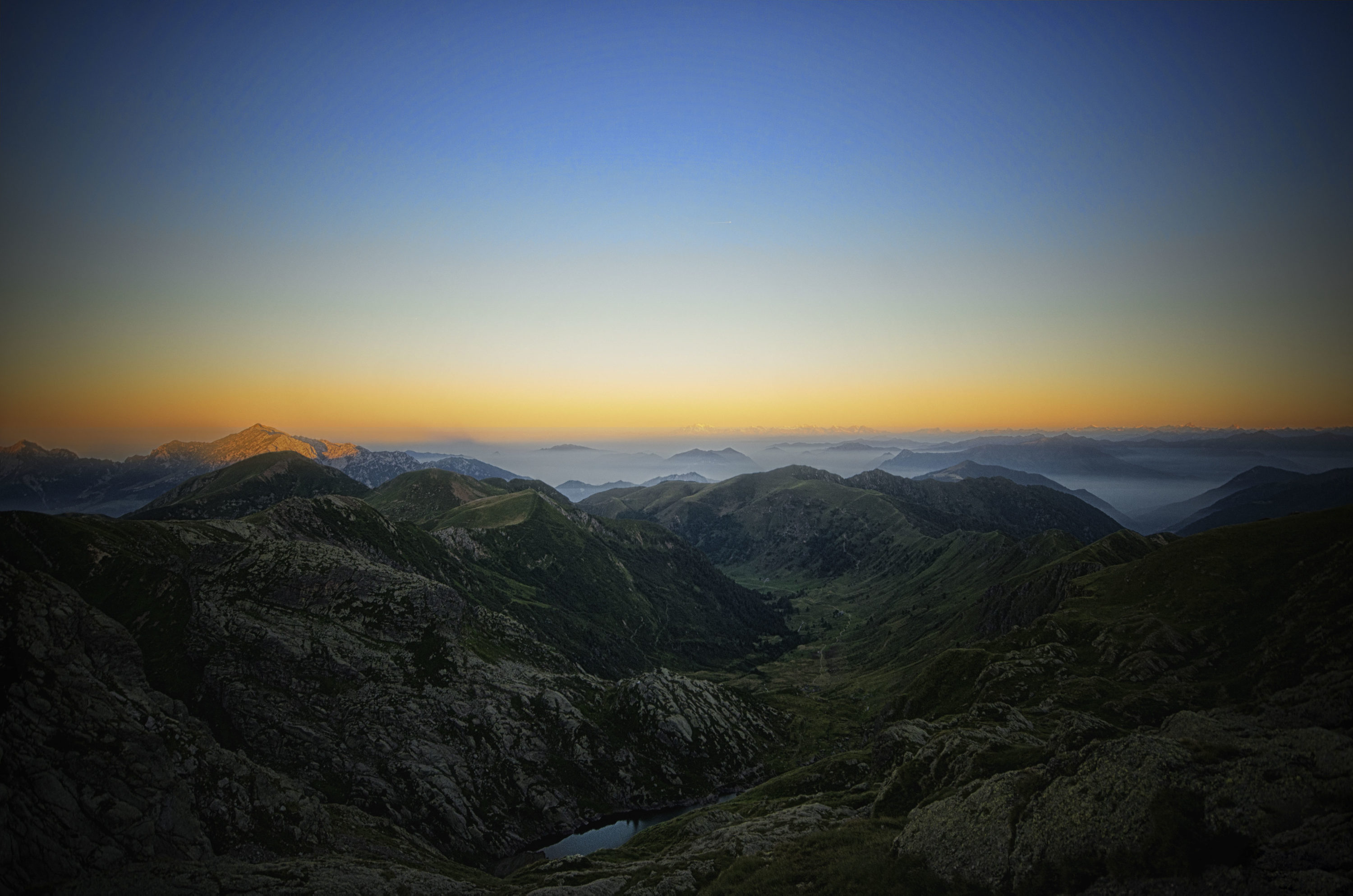 Nella medesima solitaria, non tenuto conto delle temperature rigide oltre i 2000m e dell'impossibilità di riparo fisico sennon della tenda, mi ha permesso di immortalare l'alba, con le primissime luci sul Grignone e la ValBiandino ancora dormiente.