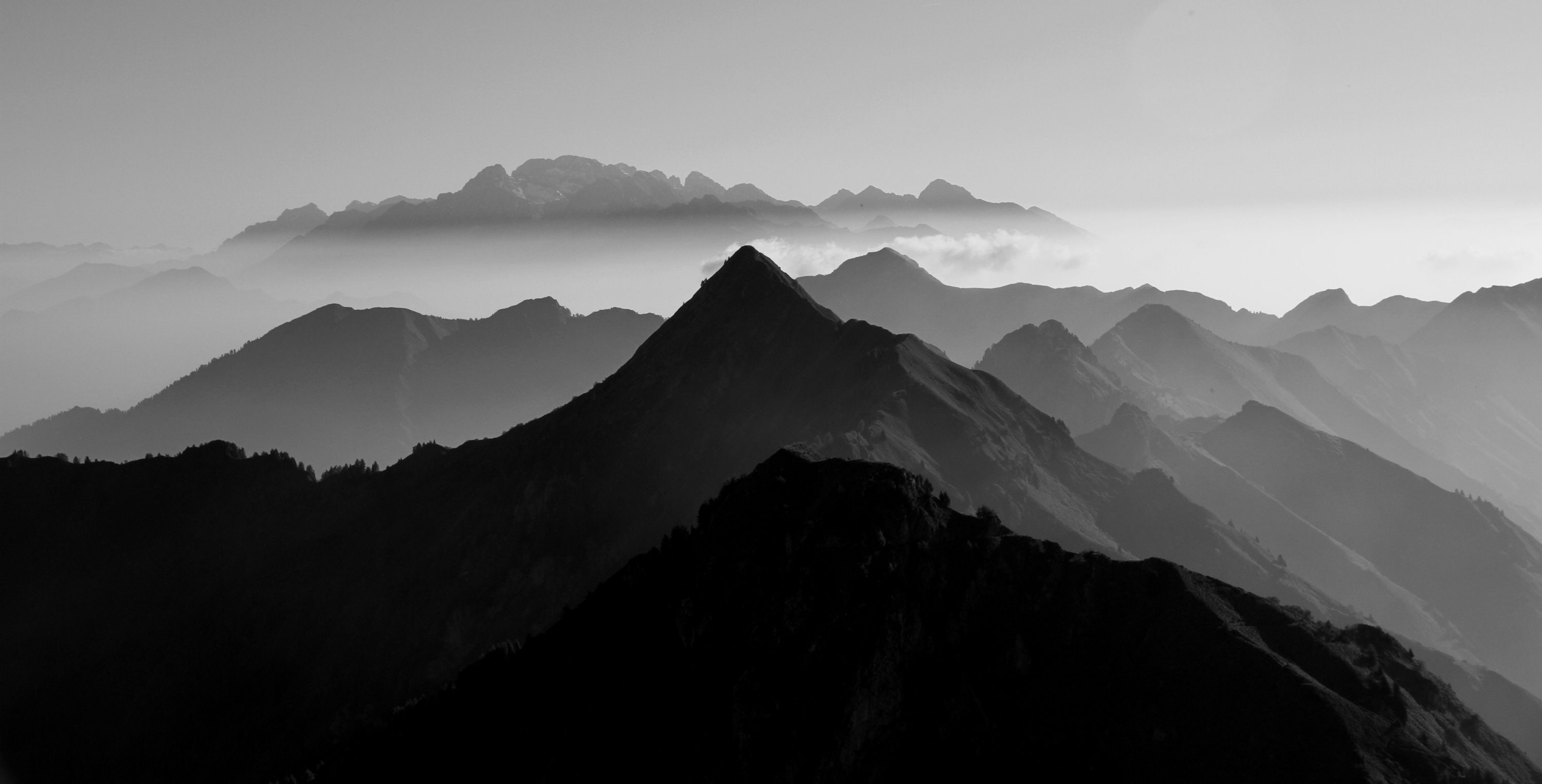 l'alba in montagna vista in bianco e nero