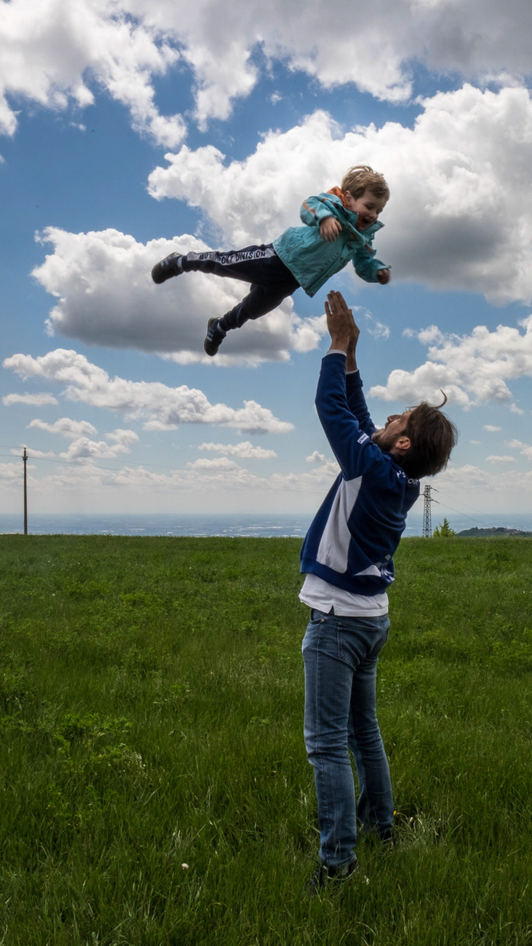 Un figlio, segno del desiderio d'immortalità dell'uomo, lanciato verso il cielo che simboleggia l'infinito.