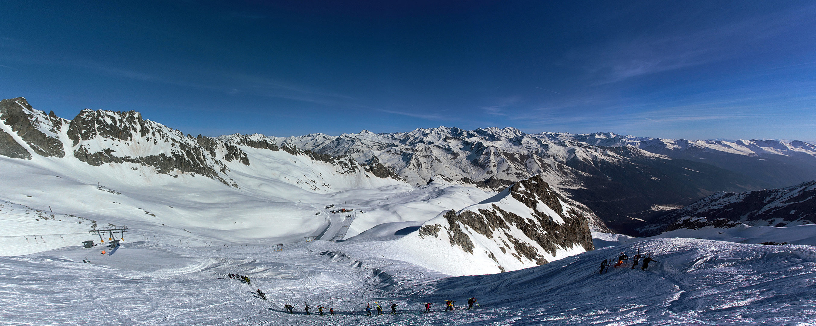 Tutti in fila per salire a passo Paradiso e traversare fino al Pisgana e giù fino a Pontedilegno.