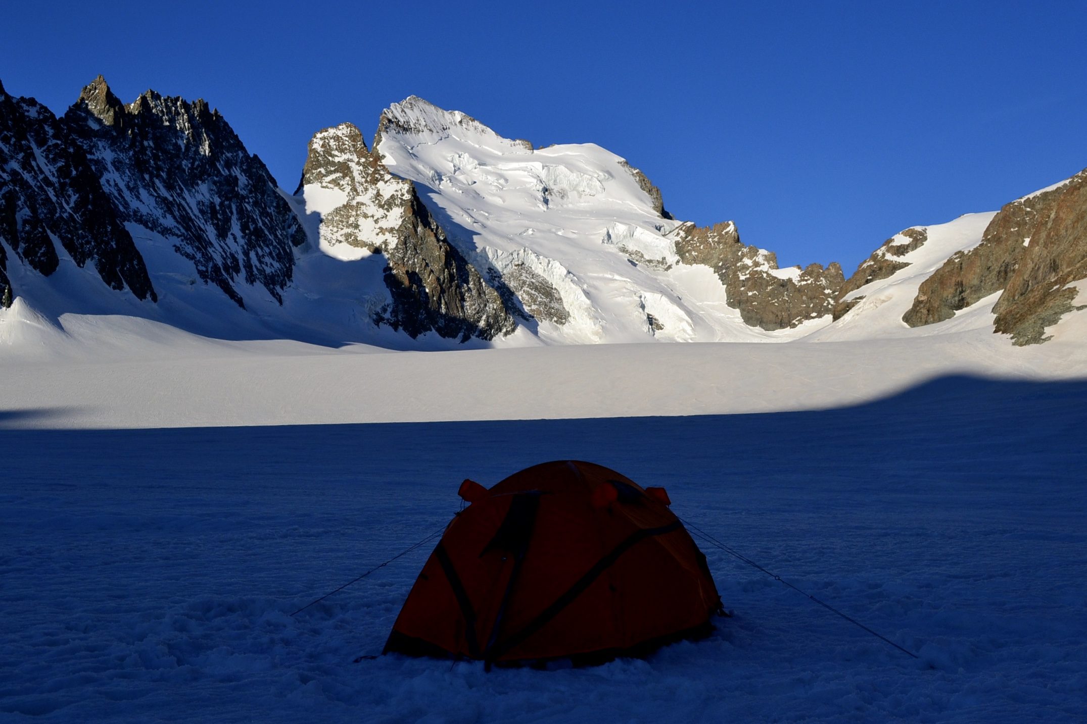 Tendina da bivacco sul ghiacciaio della Barre Des Ecrins (Francia)