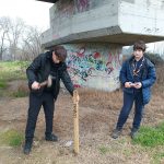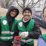 - Il gruppo di operatori sentieri mentre studia presso il fontanile Oriola le modalità per campionare i dati della sorgente
