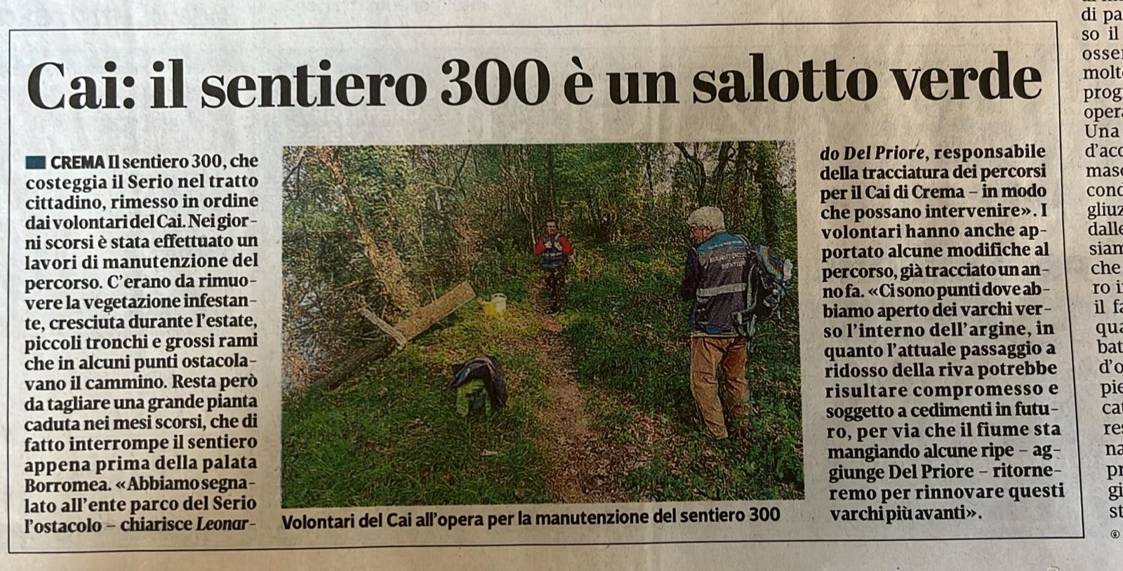 - Durante la classica camminata del Giovedi il Gruppo CAI CREMA si sofferma sul sentiero 300