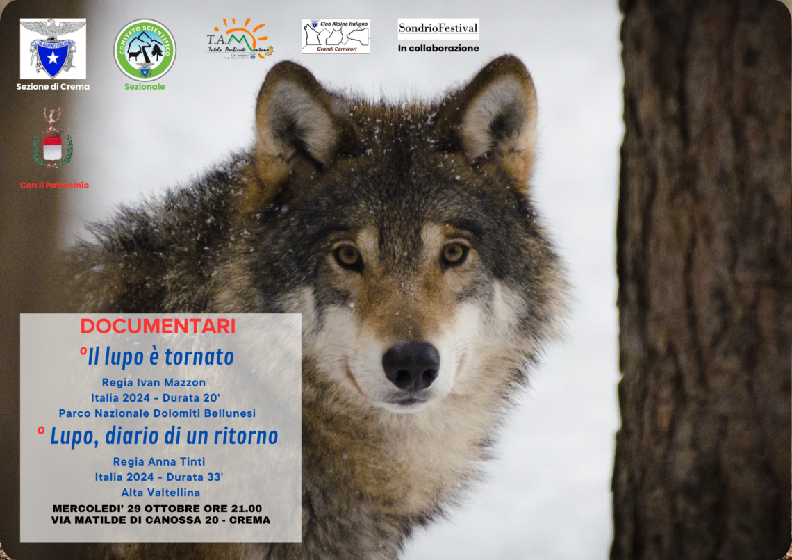 Il lupo è tornato – Lupo, diario di un ritorno 10 Ottobre 2025 MERCOLEDI 29 OTTOBRE 2025 – Ore 21:00 Sala Alessandrini Via Matilde di Canossa, 20 Crema CategoryNews