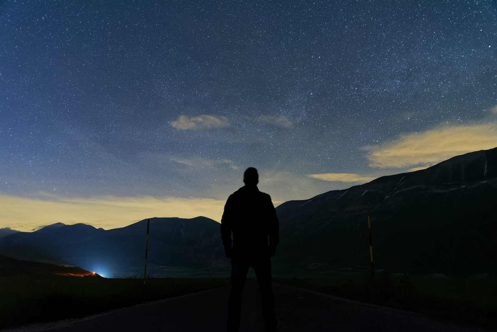 Lunga esposizione su treppiede, scattata a Castelluccio di Norcia (PG), sotto il Monte Vettore. Giugno 2018. L'avventura è una notte intera passata sull'altopiano, al buio e completamente da solo, ammirando e fotografando le stelle, dal tramonto precedente fino all'alba e oltre; il premio che attende il fotografo è la solitudine completa, la percezione della propria piccolezza nell'universo, ma anche un gran senso di pace e comunione con se stesso e con la natura. Singolo scatto rigorosamente editato secondo le linee guida del concorso Nikon D750/Tamron 28-75mm f/2.8 f/3.2 15sec ISO 3200